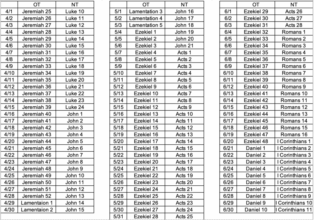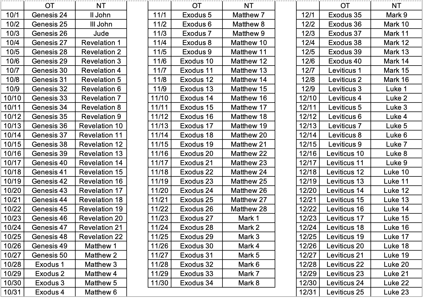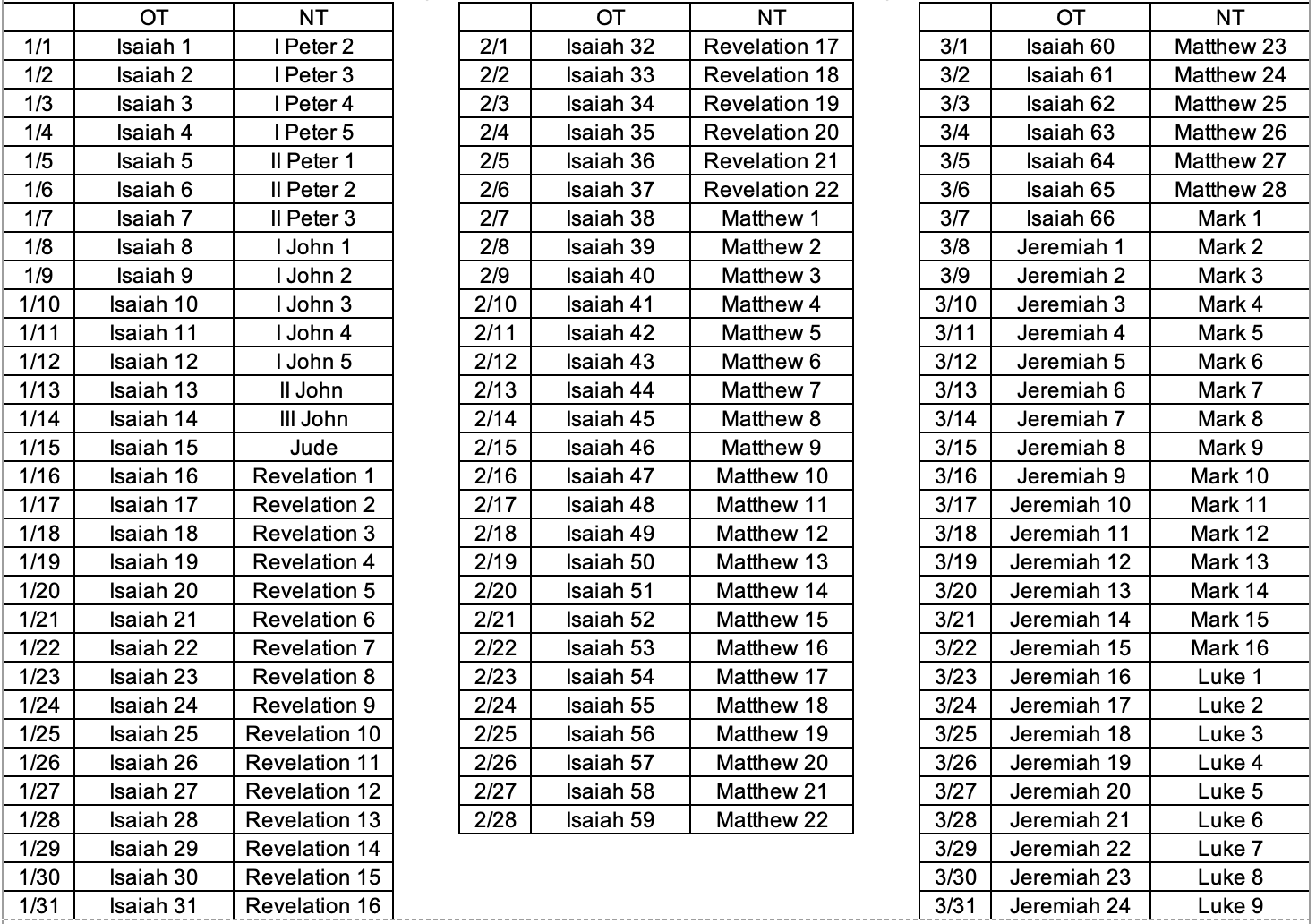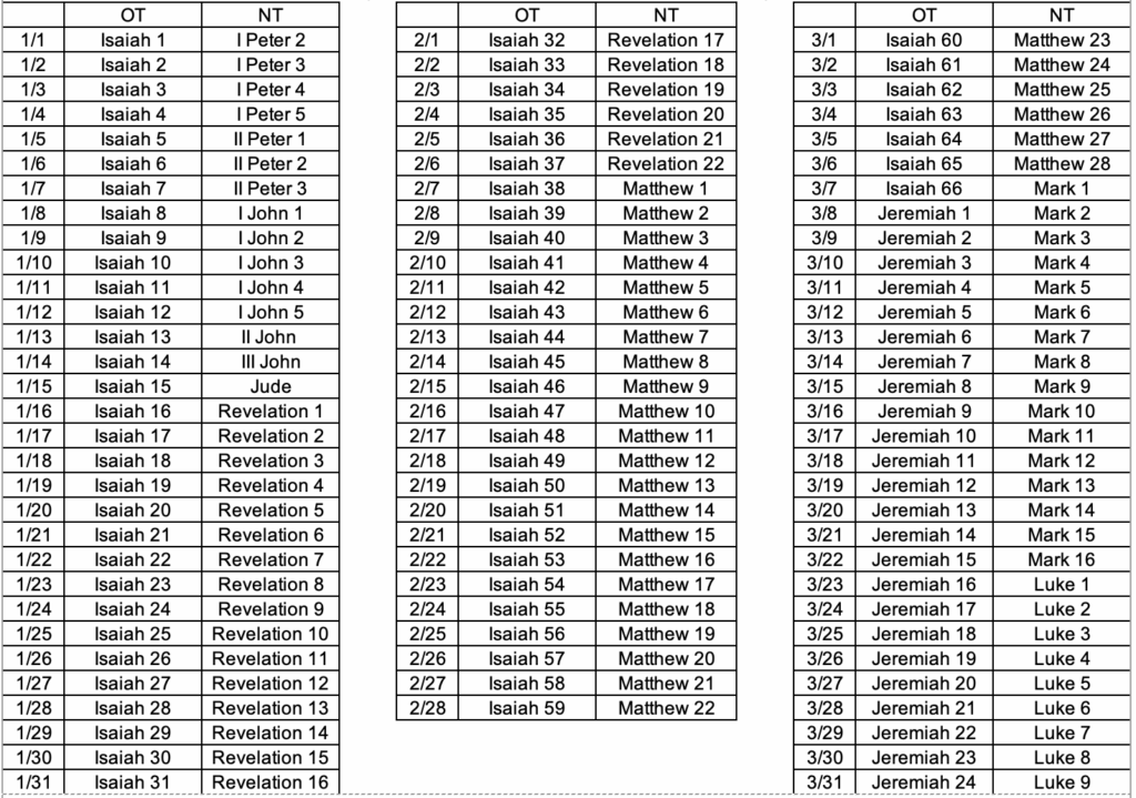 Bible Reading Let’s read the Bible together! Only 1 chapter from the Old Testament and 1 chapter from the New Testament every day. 2025